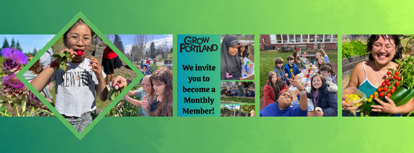 The Grow Portland team is back with students for another year of learning, tasting, exploration and garden fun! Join our team and over 6,300 students in tending gardens, learning outside, and supporting Garden School! We invite you to get involved and make a lasting impact at Grow Portland. You can provide consistent, year-round support for school gardens, helping educators, teachers and students plan, plant, harvest, and learn together.